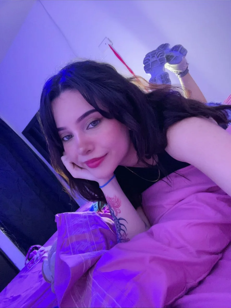 White gothic girl looking for fun in her room, speaking fluent English.