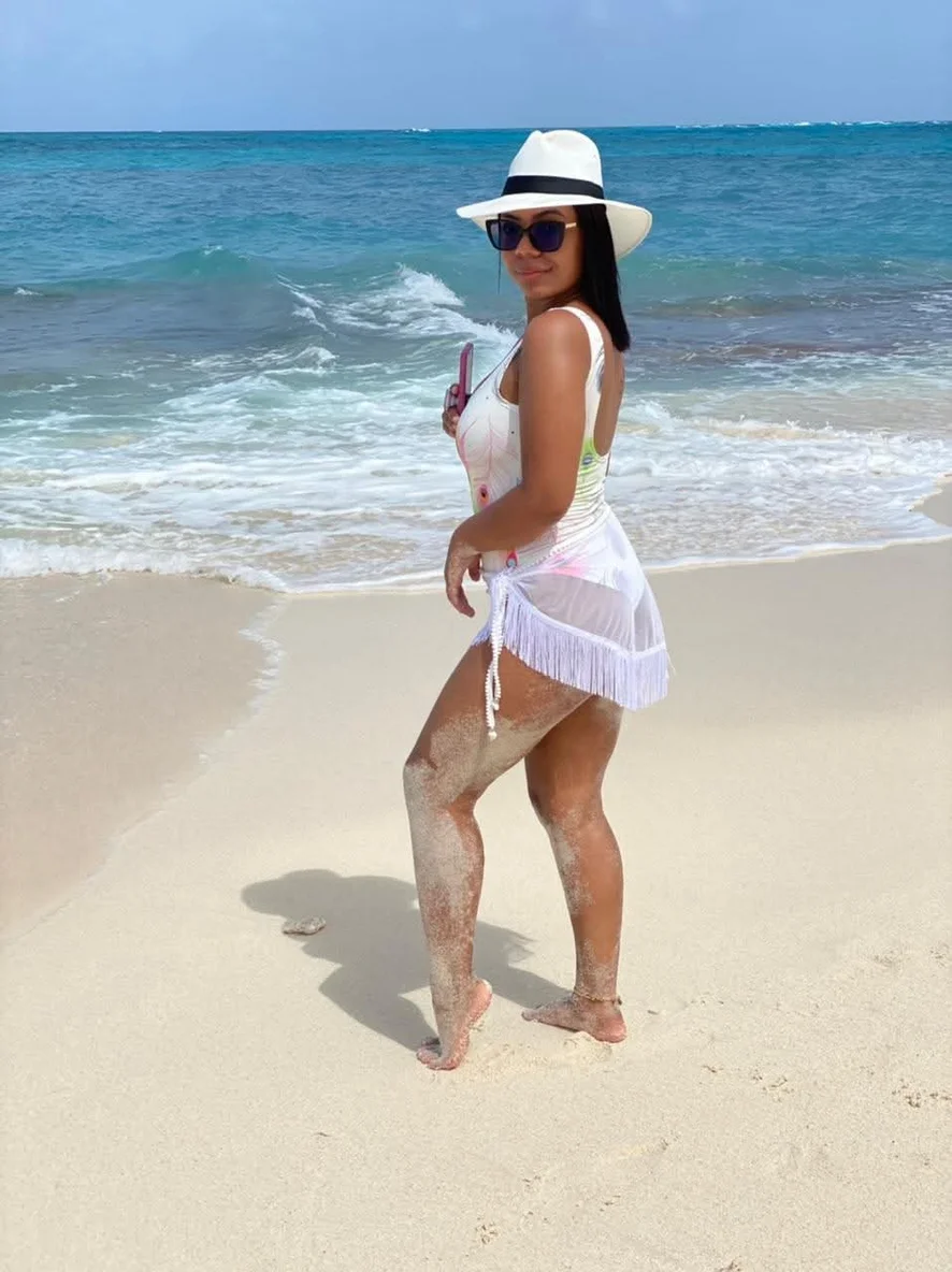 Cada ola me recuerda lo mucho que disfruto vivir, explorar y ser simplemente yo: auténtica, libre y divertida. 🌴💃🌞 #AmorPorElMar #ViajarEsVivir #BuenaVibra